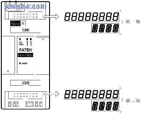 這里顯示模塊使用FBs-7SG2.共有2個通道,一個通道顯示8位7段LED。我們對顯示模塊采用譯碼碼模式。LED顯示單元為了配合程序更好設(shè)計。我們這樣編排: