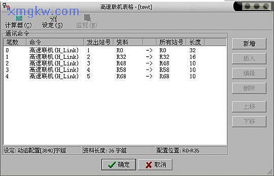 高速聯(lián)機的數(shù)據(jù)傳輸理念是以COMMON DATA MEMORY 觀念來設(shè)計,每站最多支配32word長度的資料區(qū)域。例如主站將R0~R31 的內(nèi)容送出,則所有從站PLC 的R0~R31 的內(nèi)容都會與主站相同;2 號從PLC 將R32~R47 中內(nèi)容送出,則主站及其它從PLC 的R32~R47 的內(nèi)容都會與2 號站相同,依次類推。