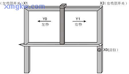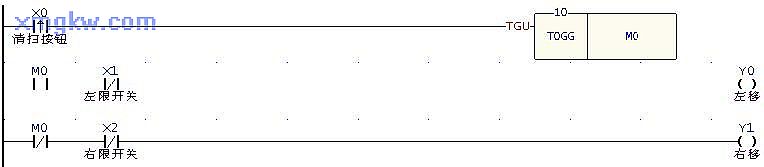【控制要求】黑板清掃臂有左移和右移兩種動作,按一下清掃按鈕,可在左移和右移兩種動作之間切換。清掃臂移至黑板左極限或右極限時,清掃臂將停止動作,直至再次按下清掃按鈕才會向上次移動方向的反方向移動。