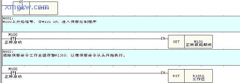 在自動(dòng)倉(cāng)儲(chǔ)系統(tǒng)或者高樓電梯控制的應(yīng)用中,常有伺服寸動(dòng)的動(dòng)作要求。我們將伺服寸動(dòng)寫成子程序,方便調(diào)用。例如正轉(zhuǎn)的副程式為 STEP+,反轉(zhuǎn)為 STEP-。