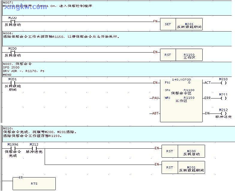 z按X9,令M200 ON,調(diào)用子程序 STEP-,令伺服馬達(dá)反轉(zhuǎn) DR1170的脈沖數(shù)。 【元件說明】