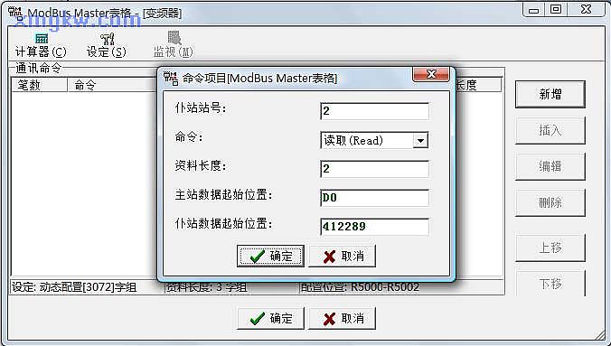 點(diǎn)擊“確定”后,進(jìn)入以下通訊命令表格: