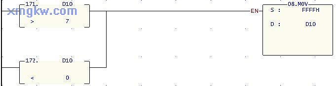 3. D10的設(shè)置值不在 0~7范圍時(shí), D10也被寫(xiě)入 FFFFH,保證不會(huì)因 D10寫(xiě)入其它值也能使 Y0~Y7動(dòng)作而導(dǎo)致輔助流水線(xiàn)暫停工作。
