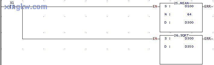2.當(dāng) X1 =ON時(shí),將 D100~D163等64筆歷史數(shù)據(jù)平均值存于 D300,D300開(kāi)平方后存于 D350 【元件說(shuō)明】