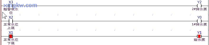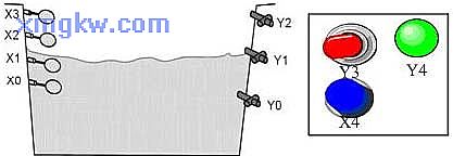 正常水位的上限傳感器:當(dāng)水量處于正常水位的上限時(shí), X2的狀態(tài)為 ON